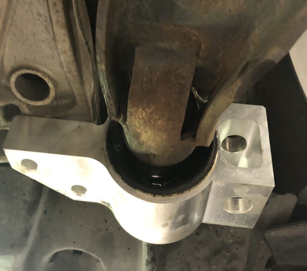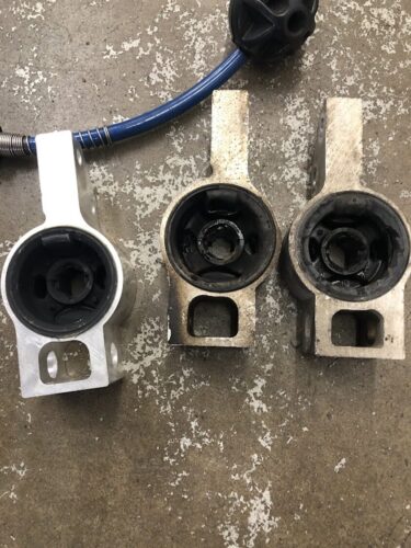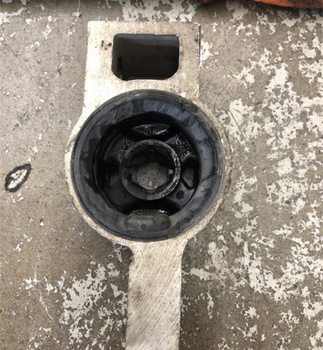サスペンション部品であるロアアームと車体を繋ぐ部分に取り付けられたゴム製の部品です。