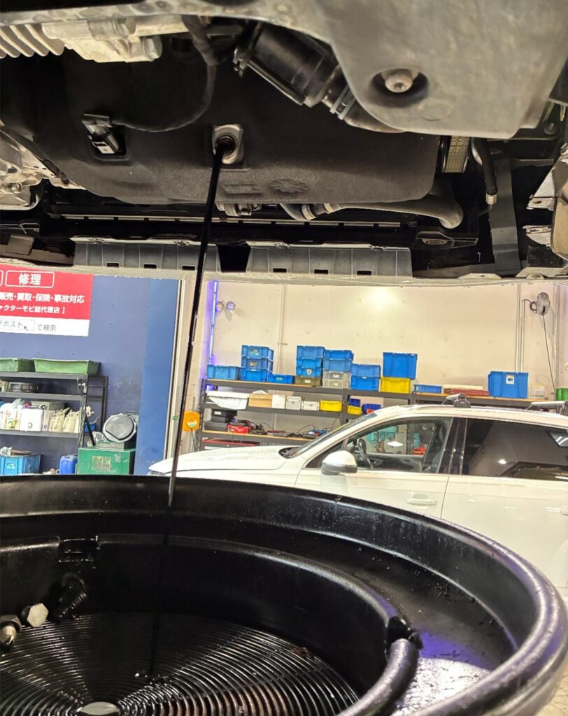 ⑤エンジンオイル・オイルフィルター交換を実施しました。(写真中央)