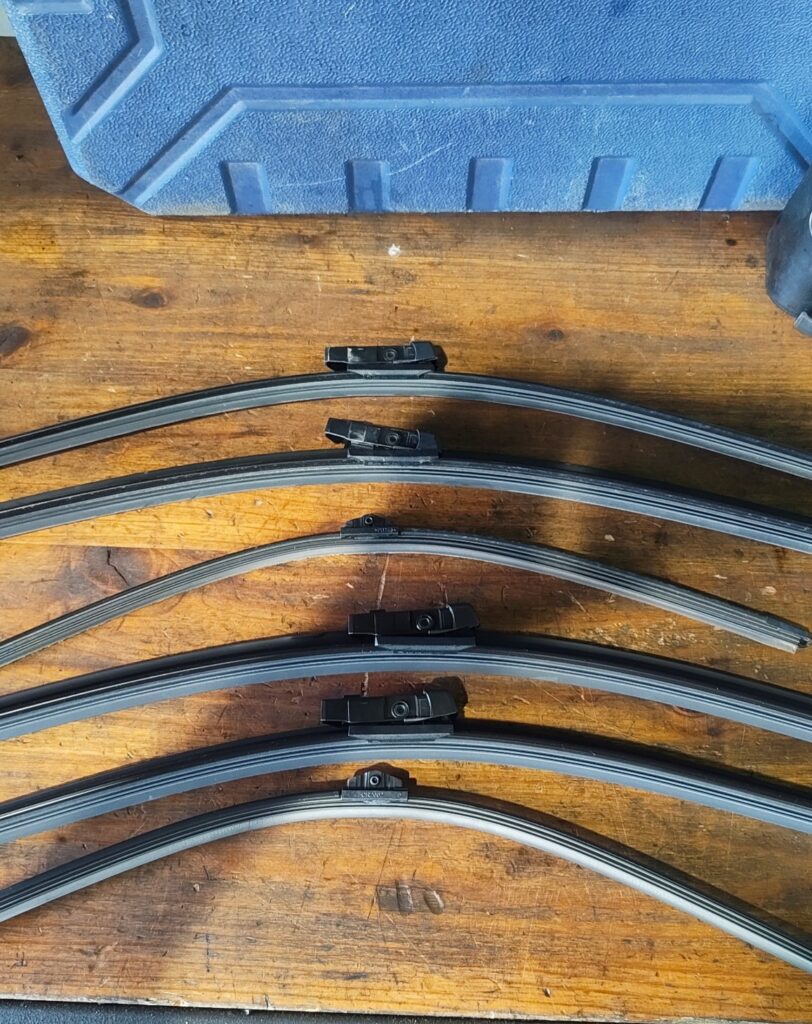 ④フロント・リア両方のワイパーブレード交換を実施しました。(写真中央、新旧の比較)