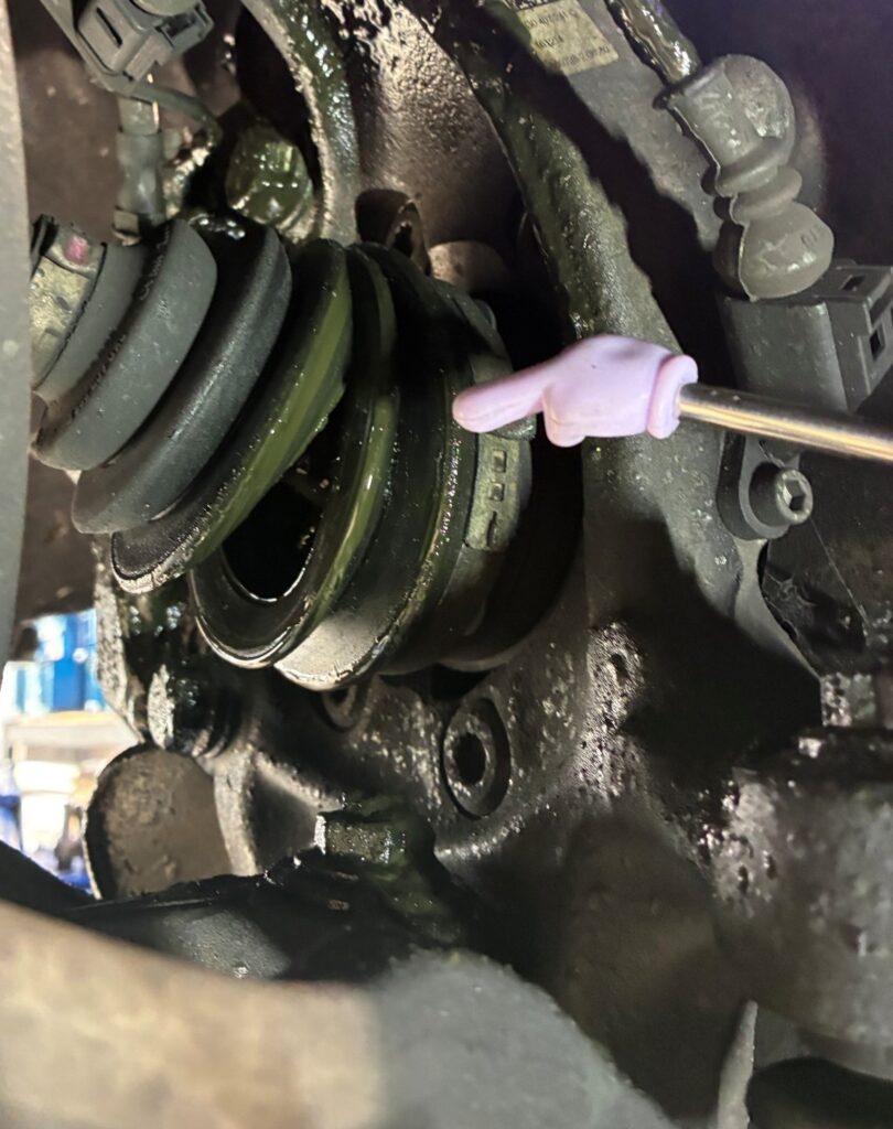 ドライブシャフトブーツに亀裂が見つかり、グリス漏れも発生していたことから、ブーツ交換とグリスの補充を実施しました。