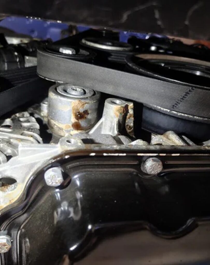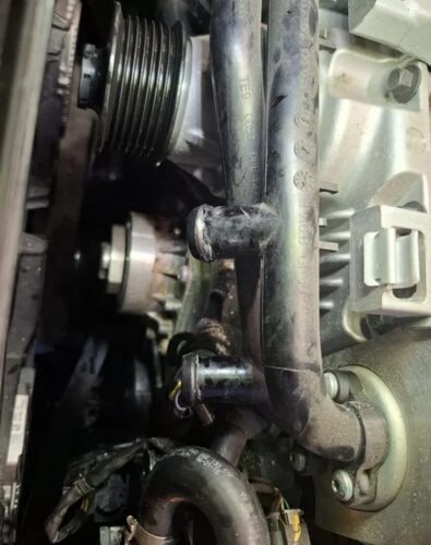冷却水漏れの原因はウォーターポンプからと判明し、ドライブベルト(内外)も含む見積もりをご案内しました。