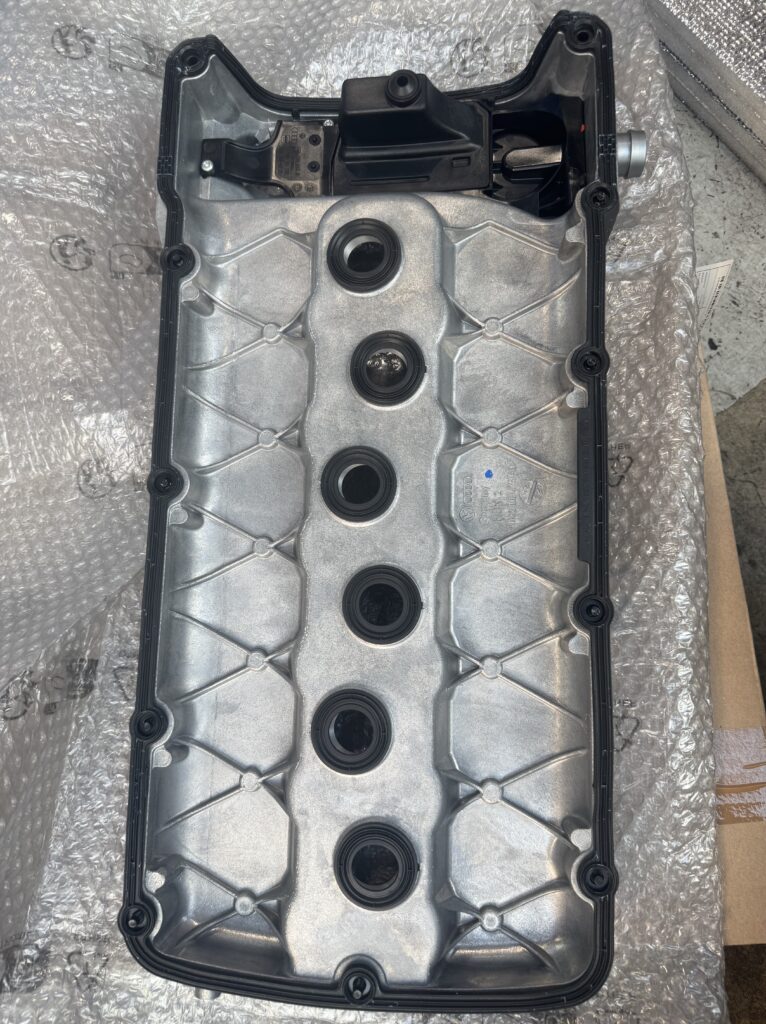エンジンヘッドカバー内蔵のオイルセパレーターの通気口からオイル漏れが確認されたことから、エンジンヘッドカバー本体の交換を実施しました。