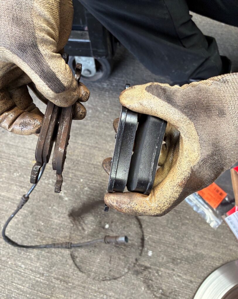 今回の作業では、リアブレーキパッド(写真中央)とディスクローターの交換(写真右)、交換作業後のキャリブレーション設定などを実施しました。
