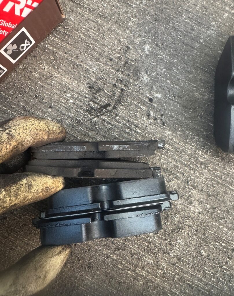 点検の結果、リアのブレーキパッドに大きな削れが見られました。