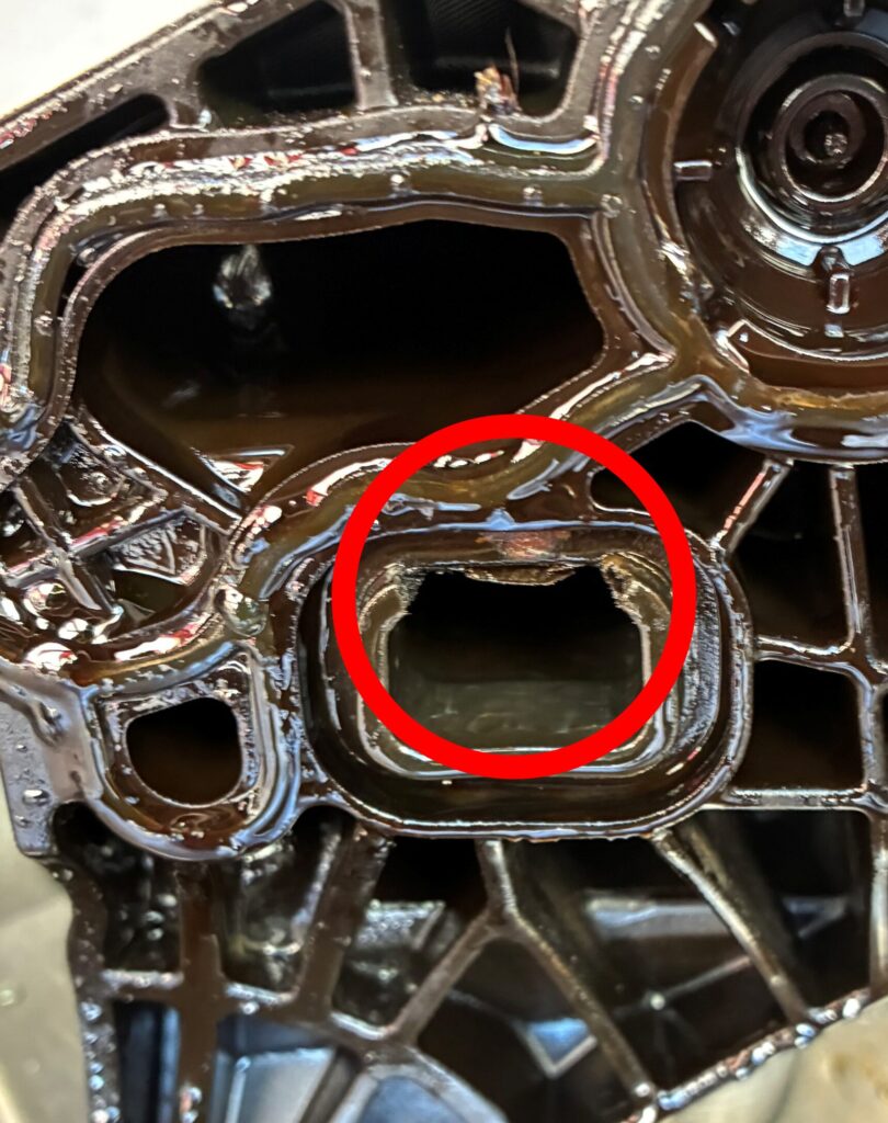 点検の結果、冷却水漏れに関しては、【オイルフィルターハウジング内部の亀裂】が原因でした。