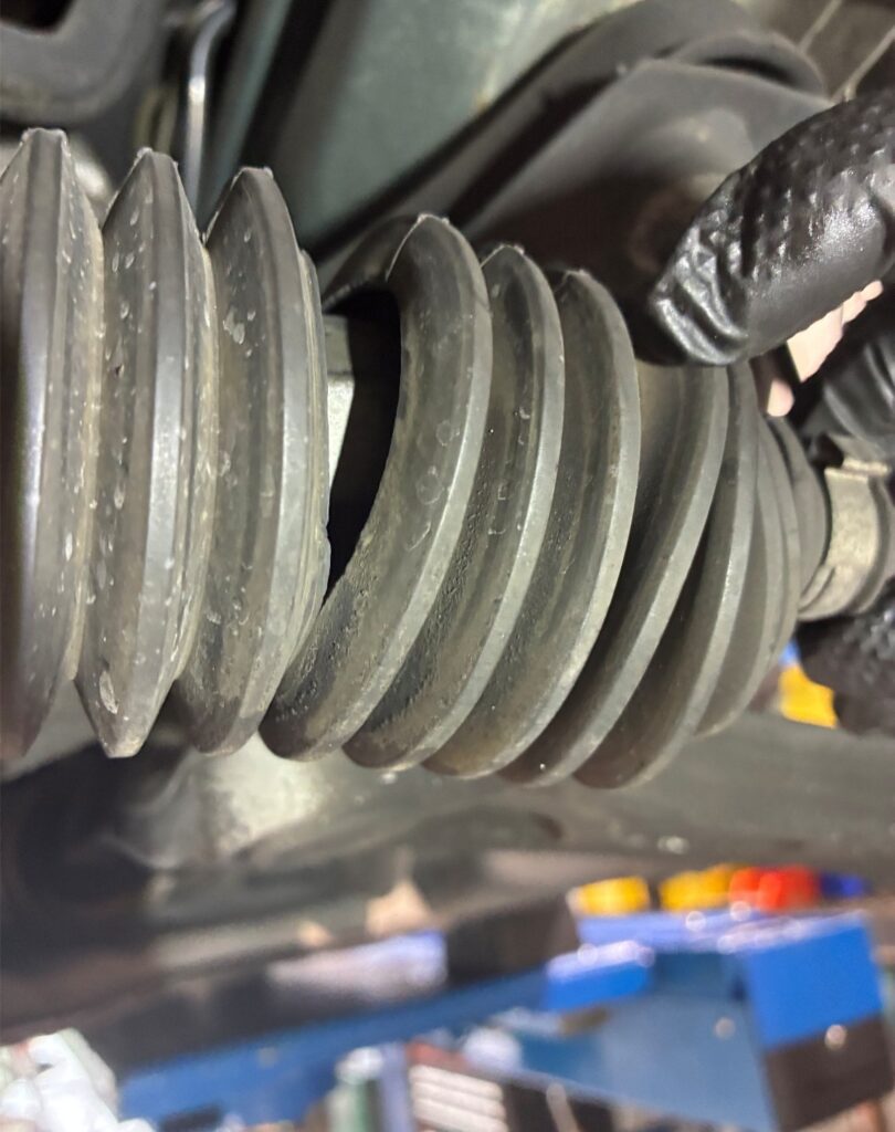 ⑤左側のステアリングラックブーツに亀裂が見つかったことから、交換を実施しました。