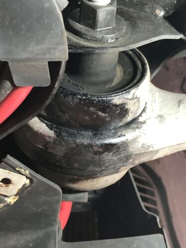 ・F左右プルストラップブッシュ劣化にてオイル漏れ