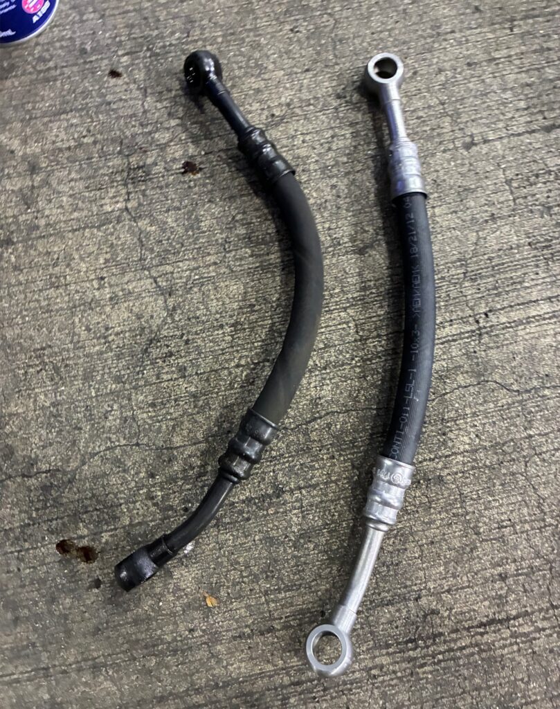 エンジンオイルを供給するための高圧ホースである、バノスオイルホースからもオイル漏れが見られたことから、交換を実施しました。