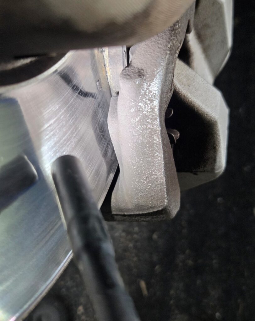 ブレーキ残量測定を行い、ブレーキパッドとディスクローターの摩耗を確認したことから、交換を実施しました。