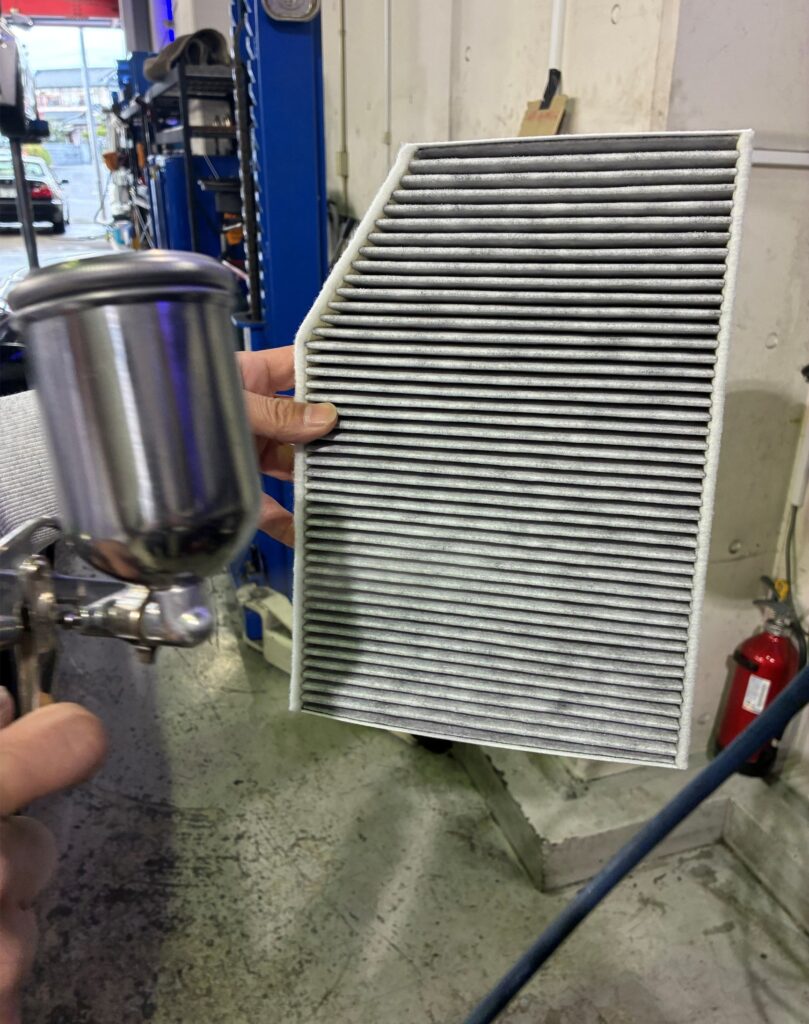 エアコンフィルターに汚れが見つかったことから、交換を実施したほか、DEOFACTOR Mobi(エアコンフィルターの制菌加工)を実施しました。