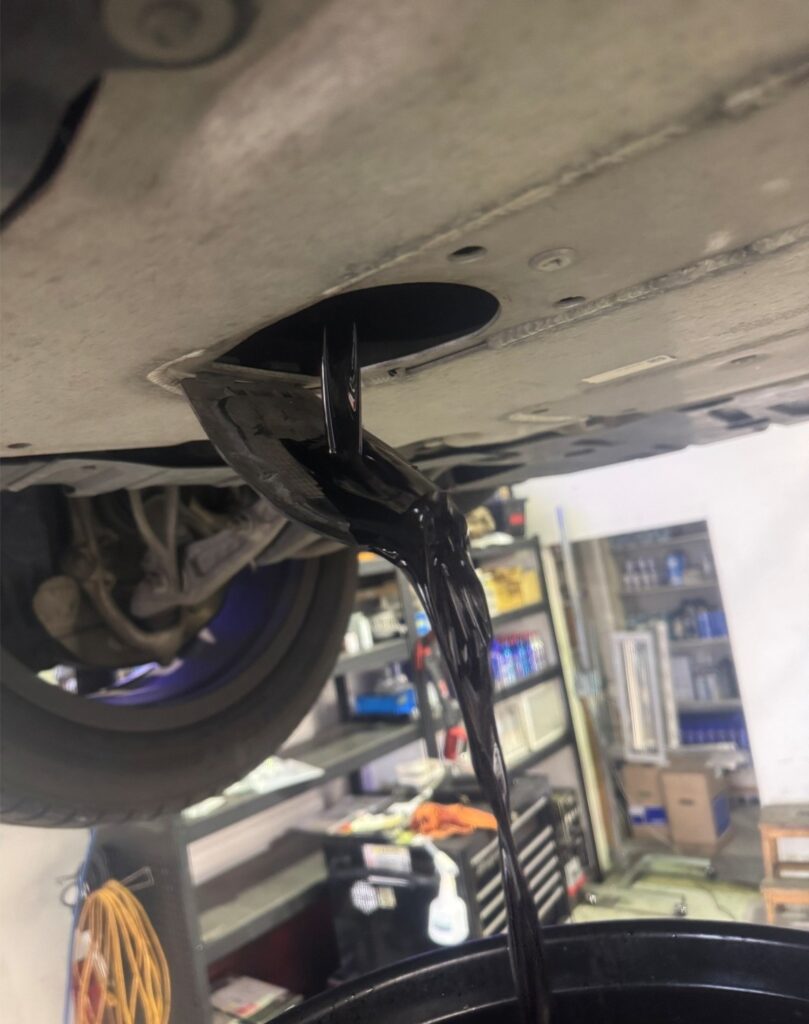 ③エンジンオイル・オイルフィルター交換を実施しました。(写真右)