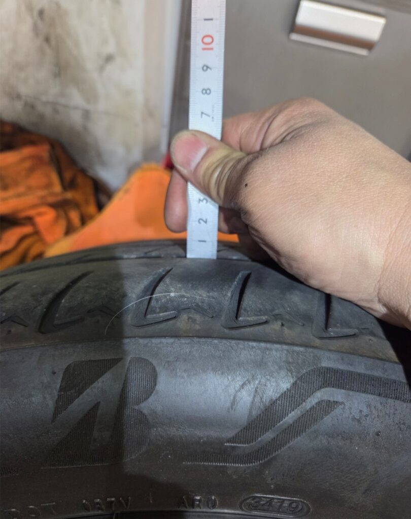 タイヤに関しては、車検基準に迫る程度まで摩耗していることを確認しました。 -