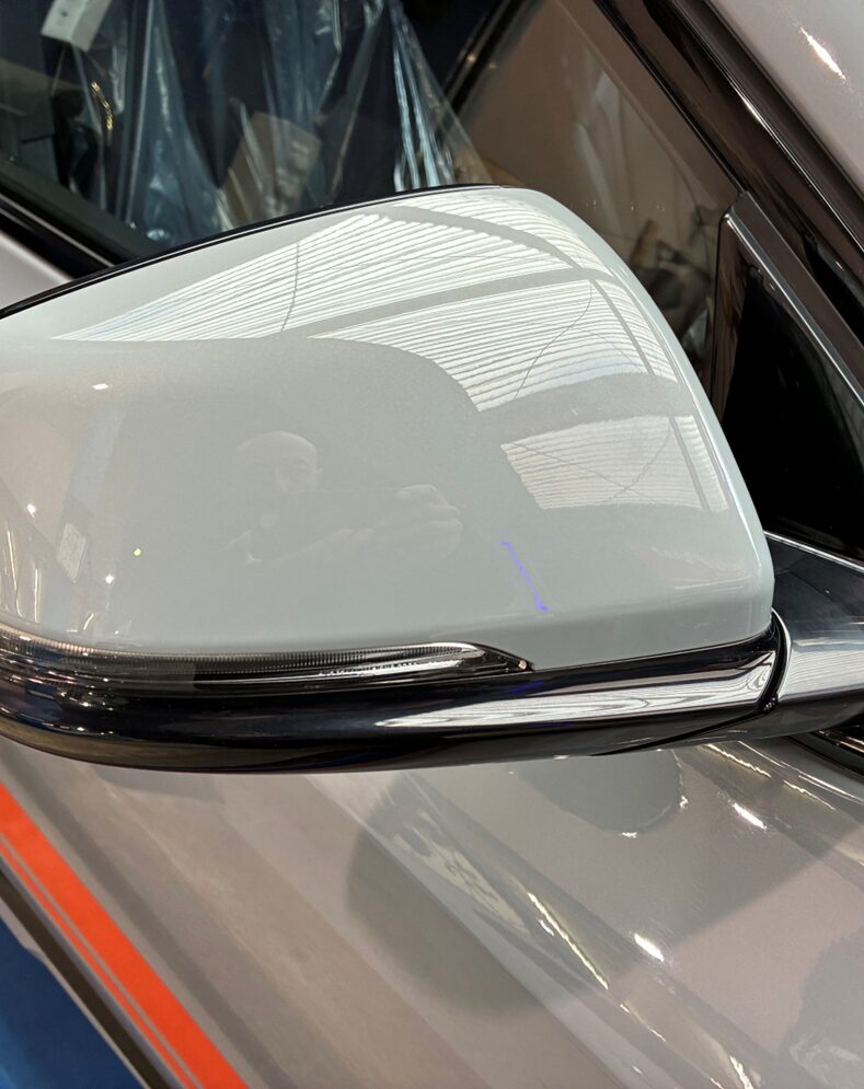 また、ドアミラーに貼られていたカバーの脱着・清掃・磨き作業と、ボンネット・