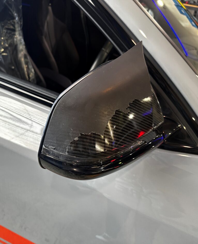 画像左が入庫時のミラー、画像中央と左が作業後のミラーになります。