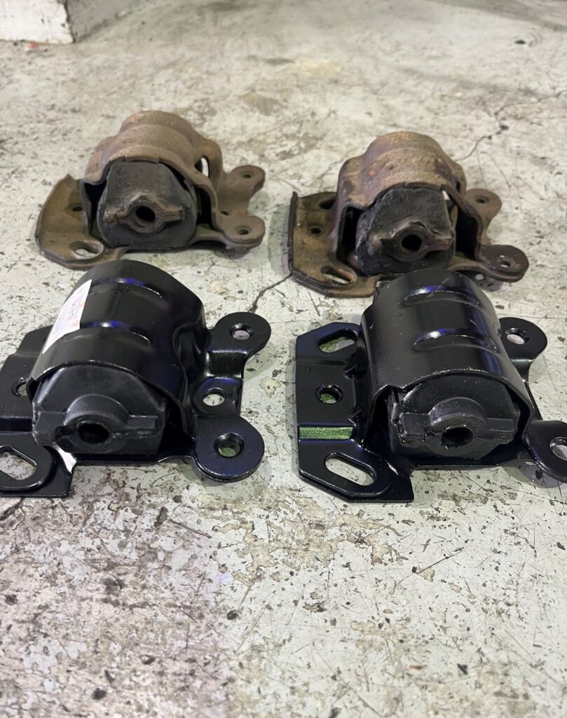 ④ヒーターバルブからの水漏れと、エンジンマウントの劣化が確認されたことから、交換を実施しました。(写真右)