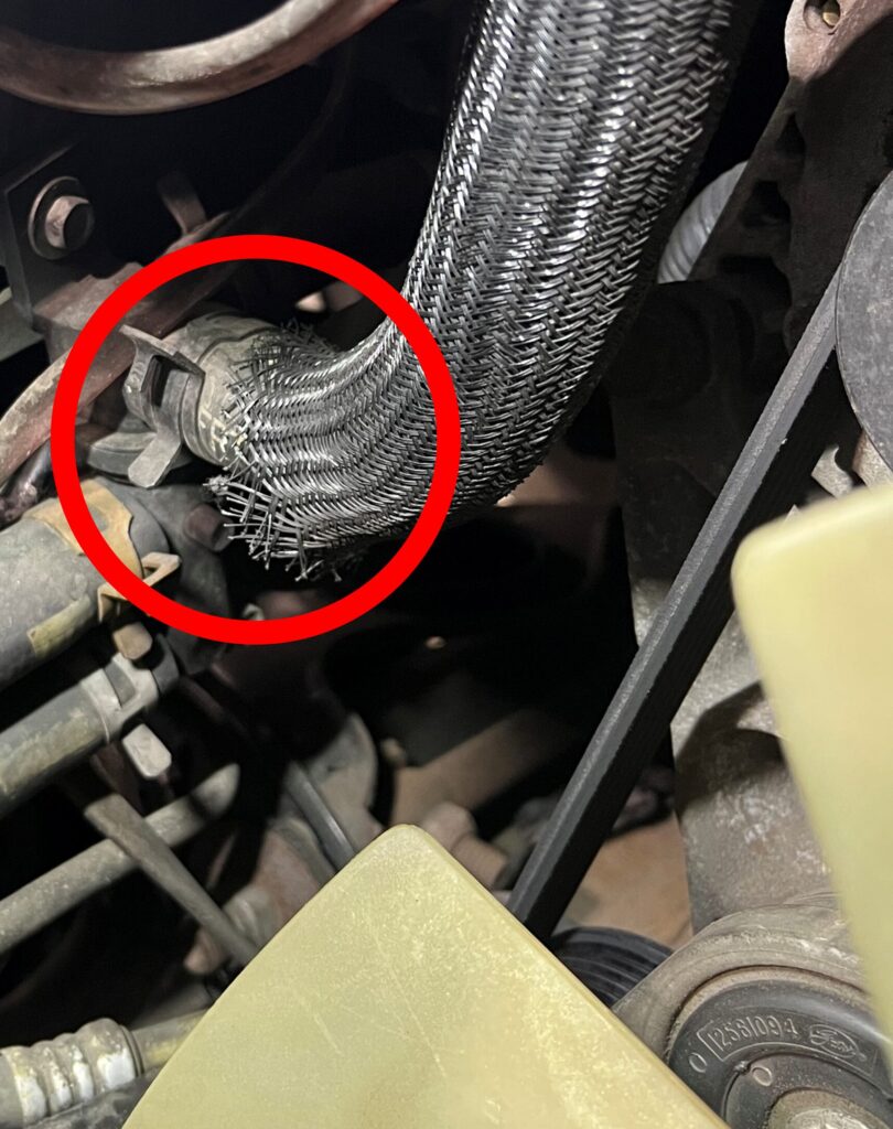 ③点検時にエアコンバキュームホースに潰れが見つかったことから、交換を提案・実施しました。