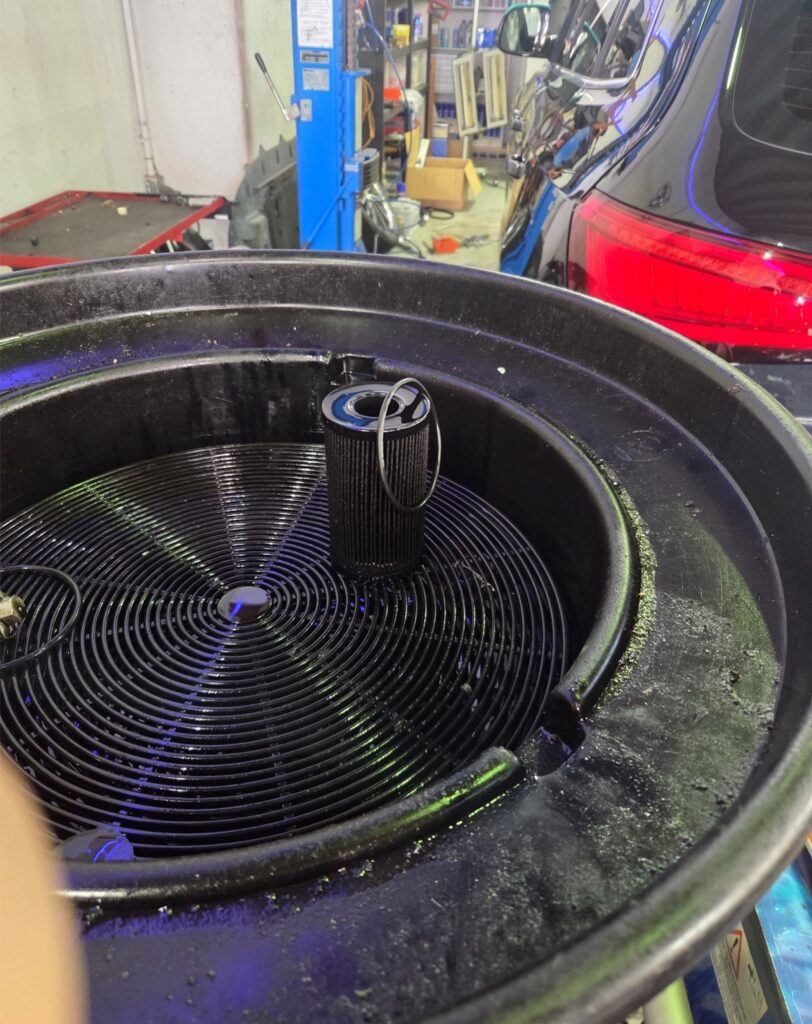 古くなったエンジンオイルを、新しいものに交換しました。また、エンジンオイルに混ざった金属粉やカーボン、汚れなどの不純物をろ過して取り除き、オイルをきれいに保つためのオイルフィルターも同時に交換しました。