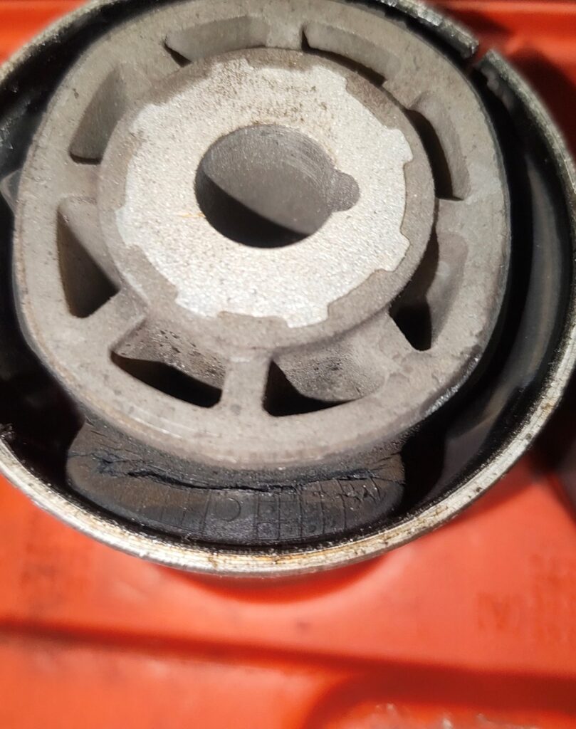 ⑤コントロールアームブッシュのヒビ割れに関しては、このままでは車検に通らないことから、交換を実施しました。(写真中央)