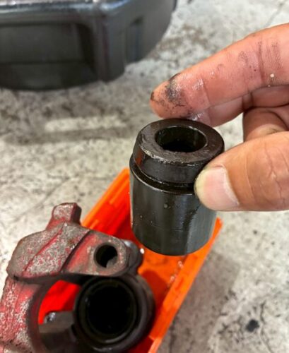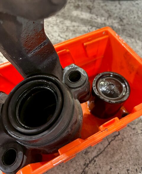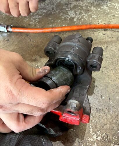 にピストンが根本まで入らないといけないのですが、およそ半分ぐらい挿入したところから急激に抵抗が増し工具を使用してようやく納められる状態です。