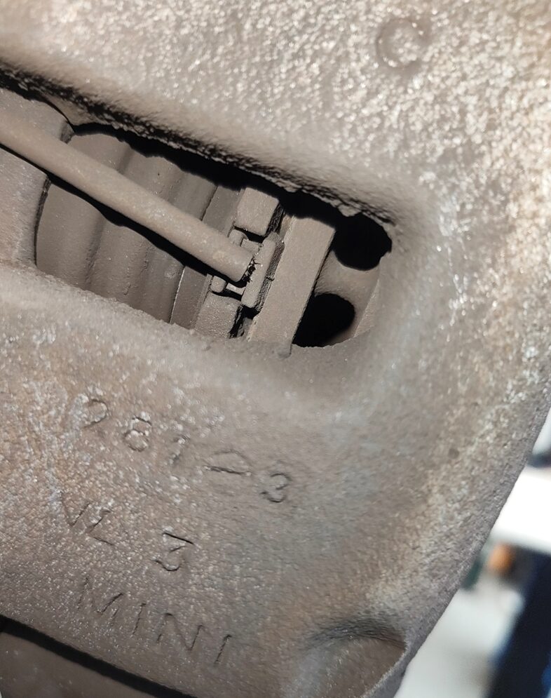 フロントのブレーキ残量が不足しています。残り2mmぐらいです