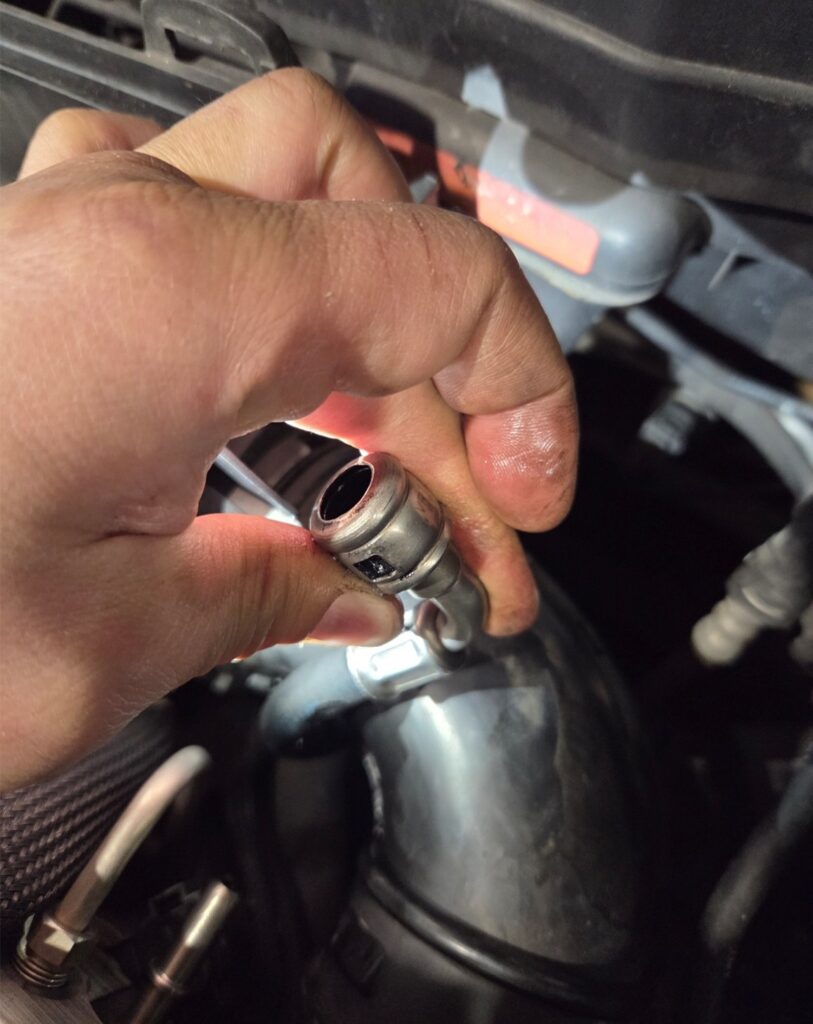 お預かり後に点検を実施し、負荷テストを行ったところ、高圧ポンプに接続する低圧フューエルパイプの動作不良が確認されました。