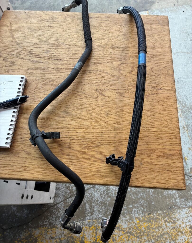 ②一度取り付け直しましたが、再度負荷をかけるとパイプが抜けてしまうことが確認されたことから、フューエルパイプの交換を実施しました。