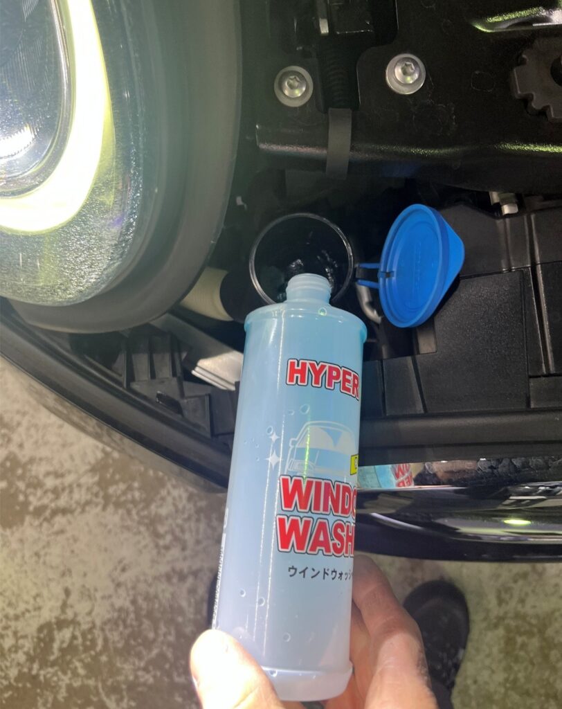 ウォッシャー液の残量低下を確認したことから、補充を行いました。