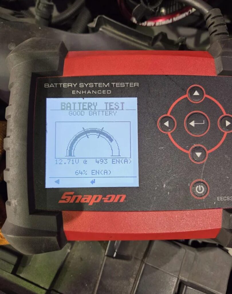 タイヤの溝やブレーキパッドの残量、バッテリーの電圧等を点検している様子です。