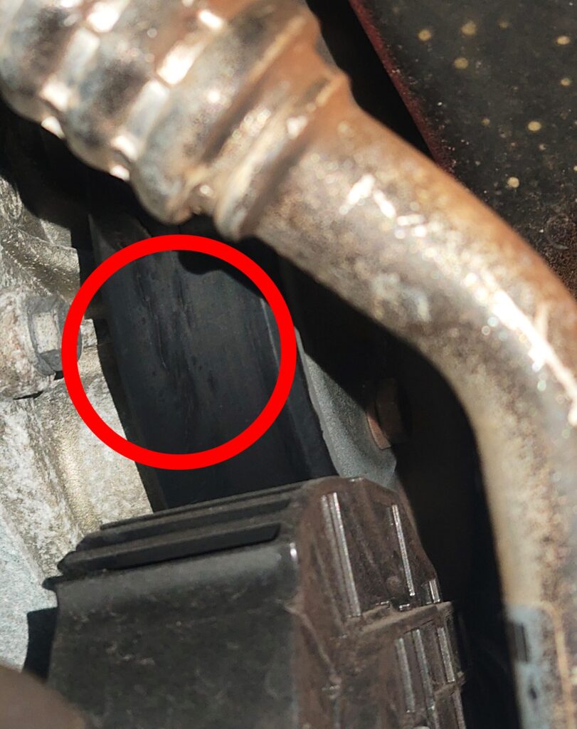 また、写真中央にあるファンベルトにも劣化が確認されました。