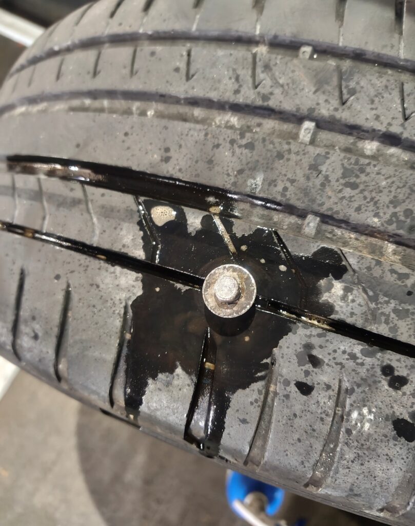 夏用タイヤを冬用の物に換装しました。その際にネジが刺さってパンクしていたことが判明したため、今回はサービスで修理を実施しました。