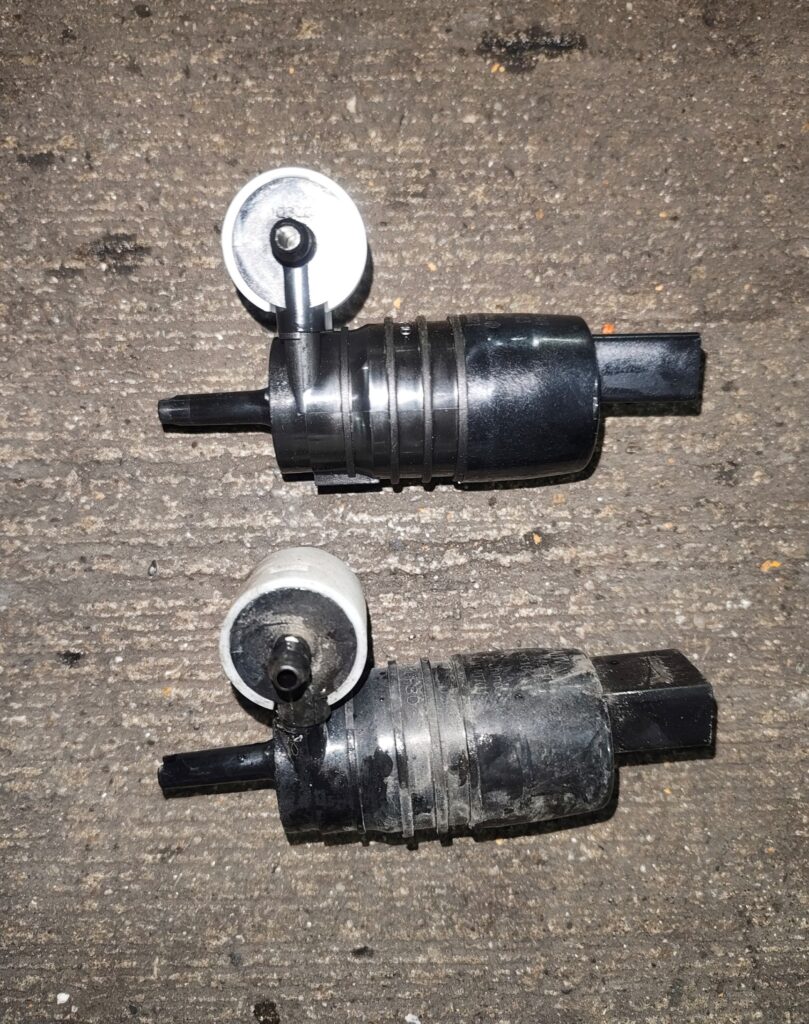 写真右が新旧ウォッシャーポンプの比較です。