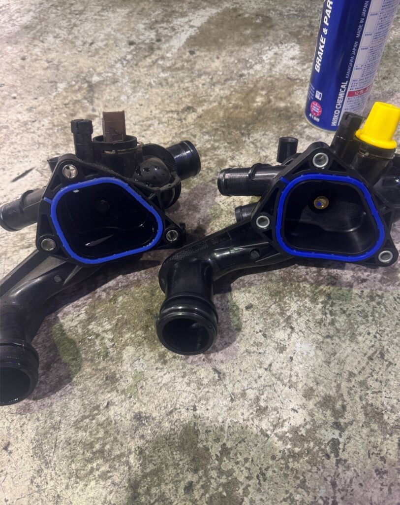 お見積り時には、水温センサーのみ交換したのちに再点検を行う予定でしたが、センサー単品での供給が無かったことから、今回はサーモスタット本体を交換することで対応しました。