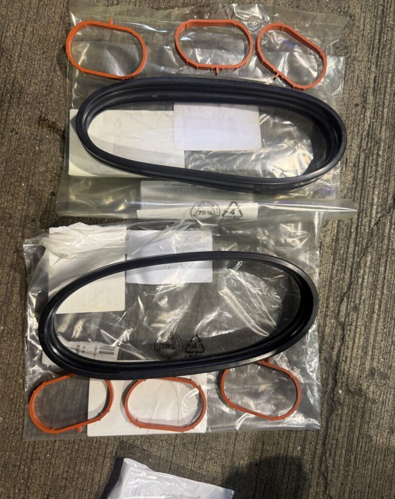 写真左がインテークマニホールドガスケット、写真中央はガスケット交換後の様子です。