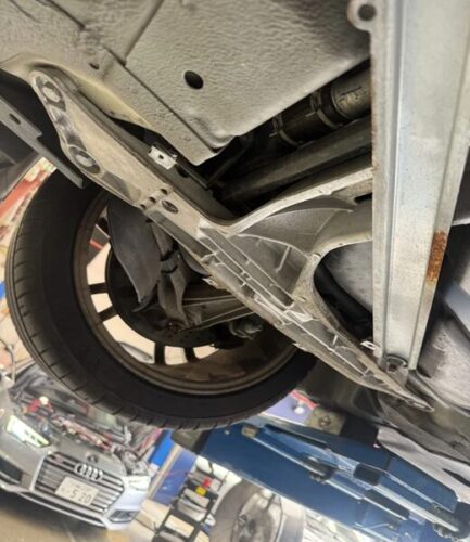異音は右のフロントロアアームブッシュからと判明し、アームASSYでの見積もりを行いました。