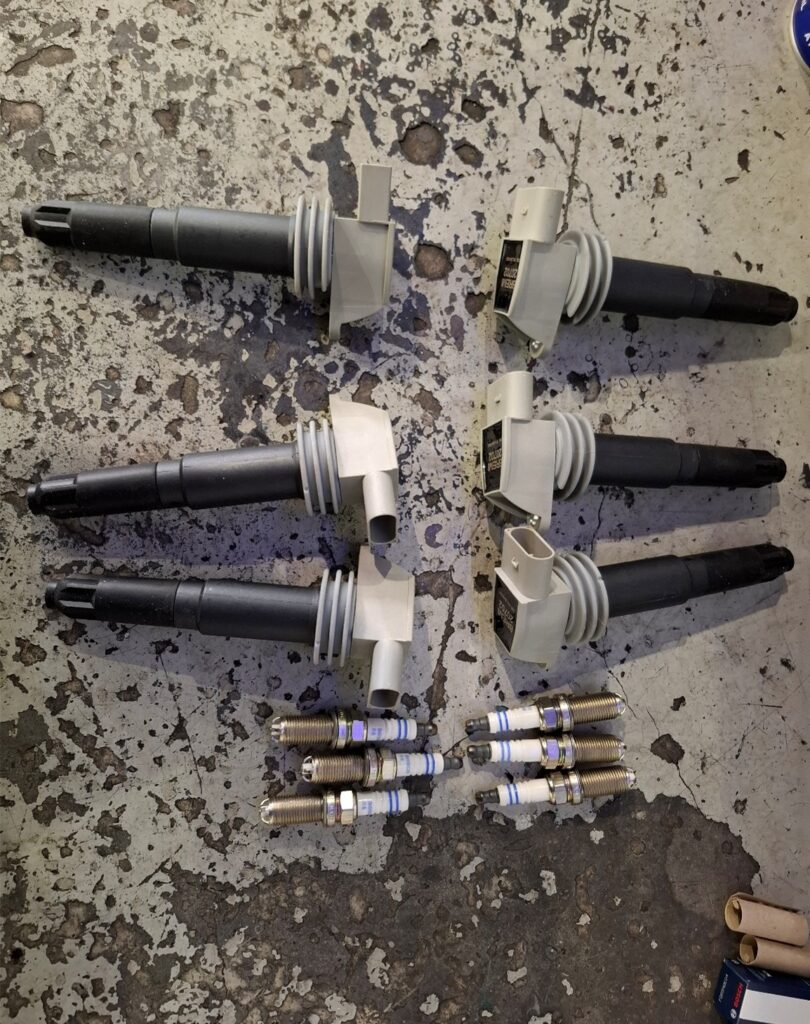 点検の結果、点火不良が確認されたことから、イグニッションコイルとスパークプラグの同時交換を実施しました。