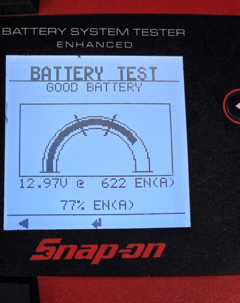 お車のバッテリーに問題がないか、確認を行いました。
