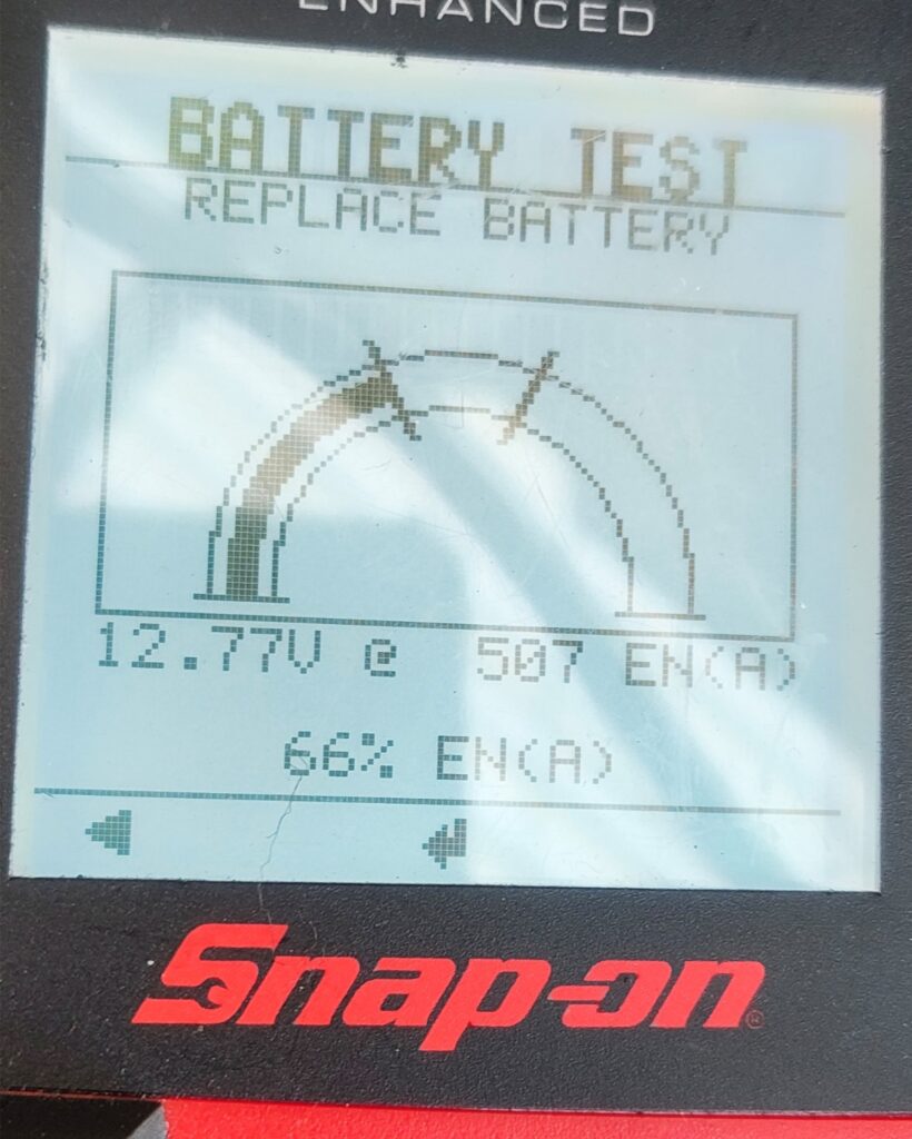 なお、バッテリー測定器には交換推奨の表示が出力されました。今回はお客様の都合により交換を実施しませんでしたが、ご要望を頂いた際には交換・補充電を実施します。