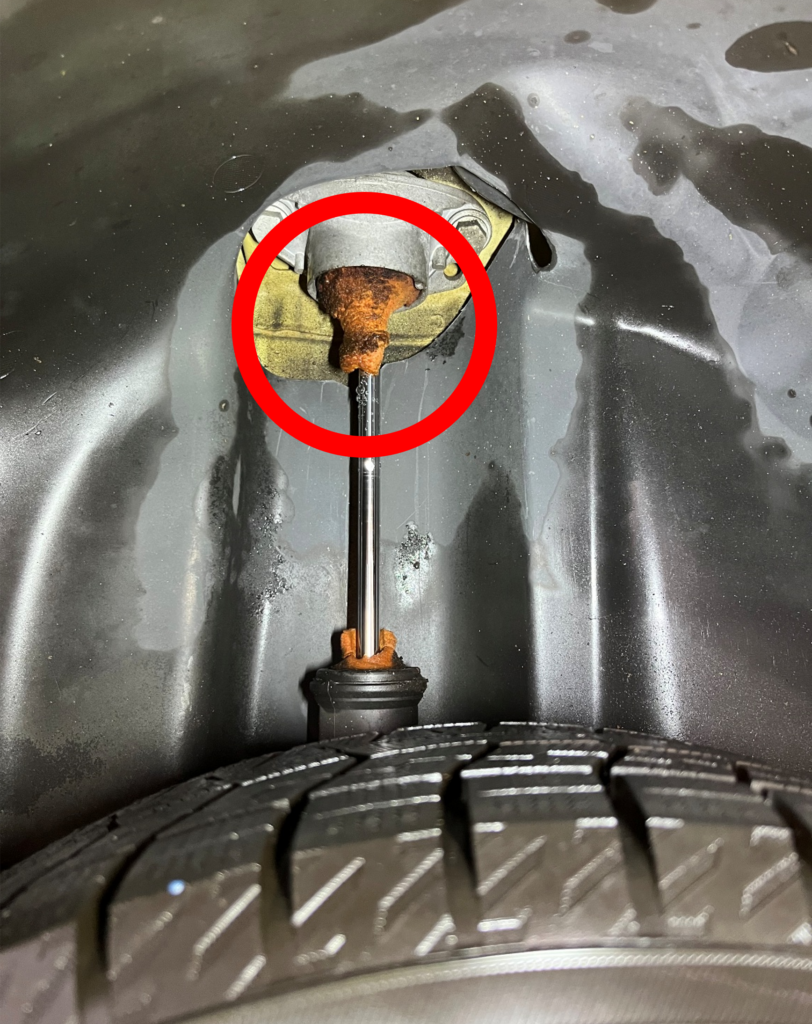 足回り部品への衝撃を緩和させるショックバンプラバーに劣化が確認されたことから、交換を実施しました。