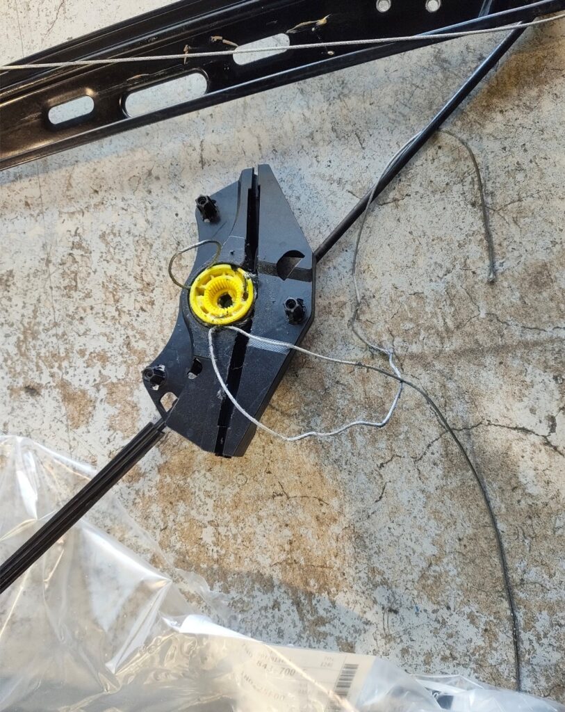 ①パワーウインドウ故障に関しては、写真左のレギュレーターワイヤーが切れてしまったことが原因であることを確認しました。