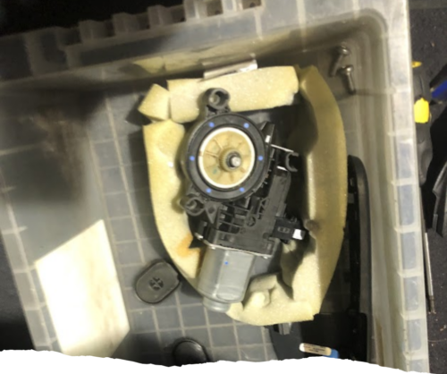 この部品の故障により、窓ガラスがドア内に落ちてきてしまう現象。
